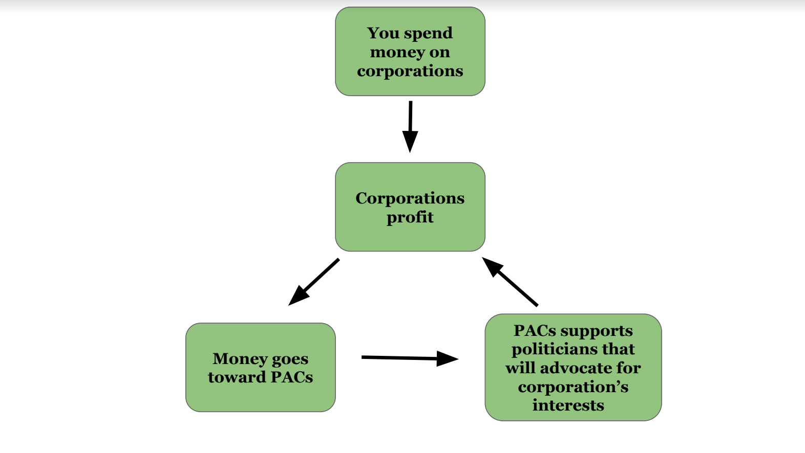action committees (PACs) in a cyclical nature; money in politics holds great power