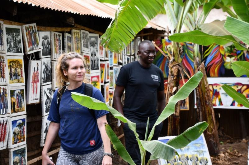 Photo: Stony Brook biology major Sarah Cotter explores a local art shop in Mto Wa Mbu during the 2018 Tanzania Summer Study Abroad program.