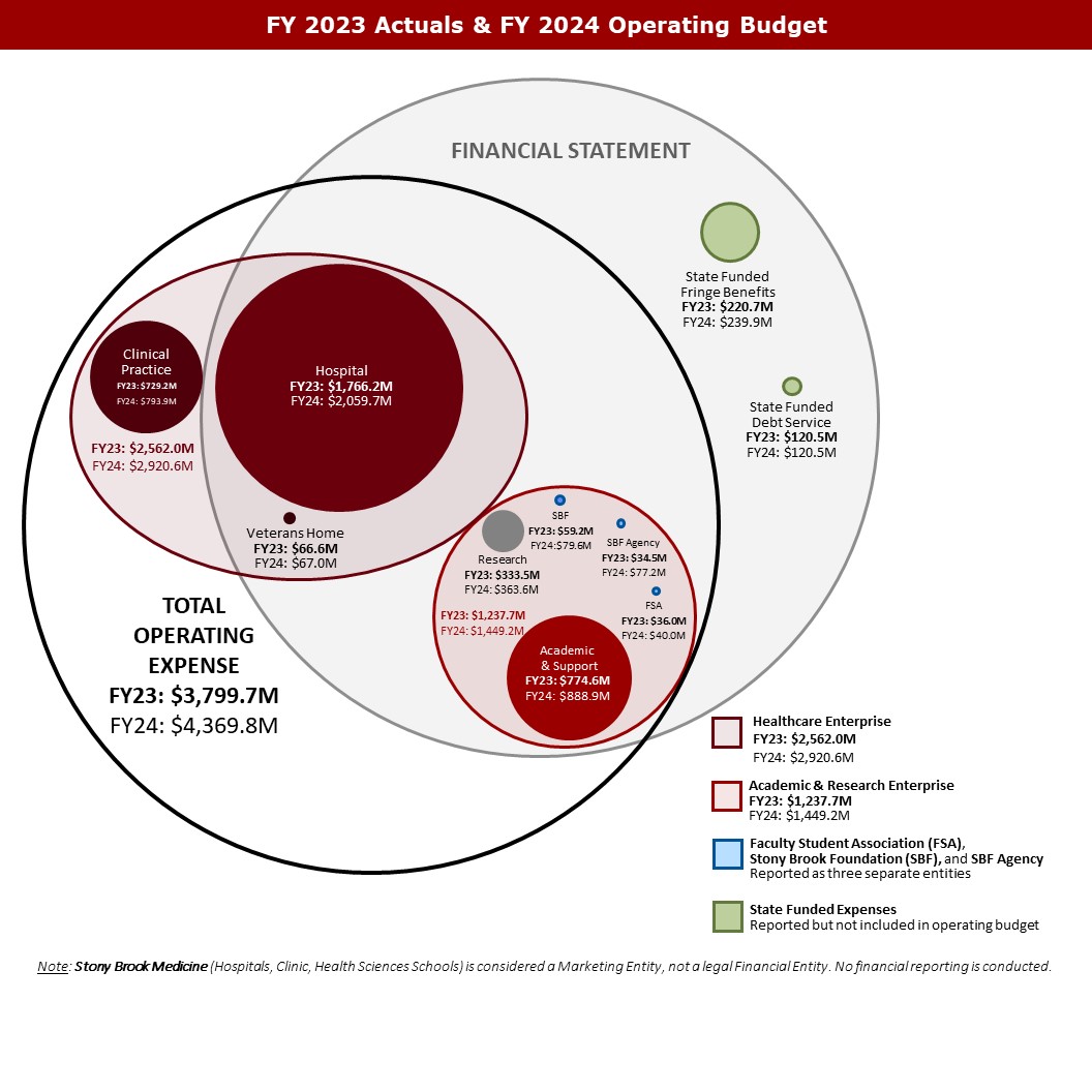 Stony Brook University (SBU) is a large and complex organization, each entity with its own governing policies and procedures. SBU is made up of two groups of activities: the Healthcare Enterprise (which includes three Hospitals, Clinical Practice & the Veterans Home) and the Academic & Research Enterprise (which includes Academic & Support, Research funds and Stony Brook Foundation funds).