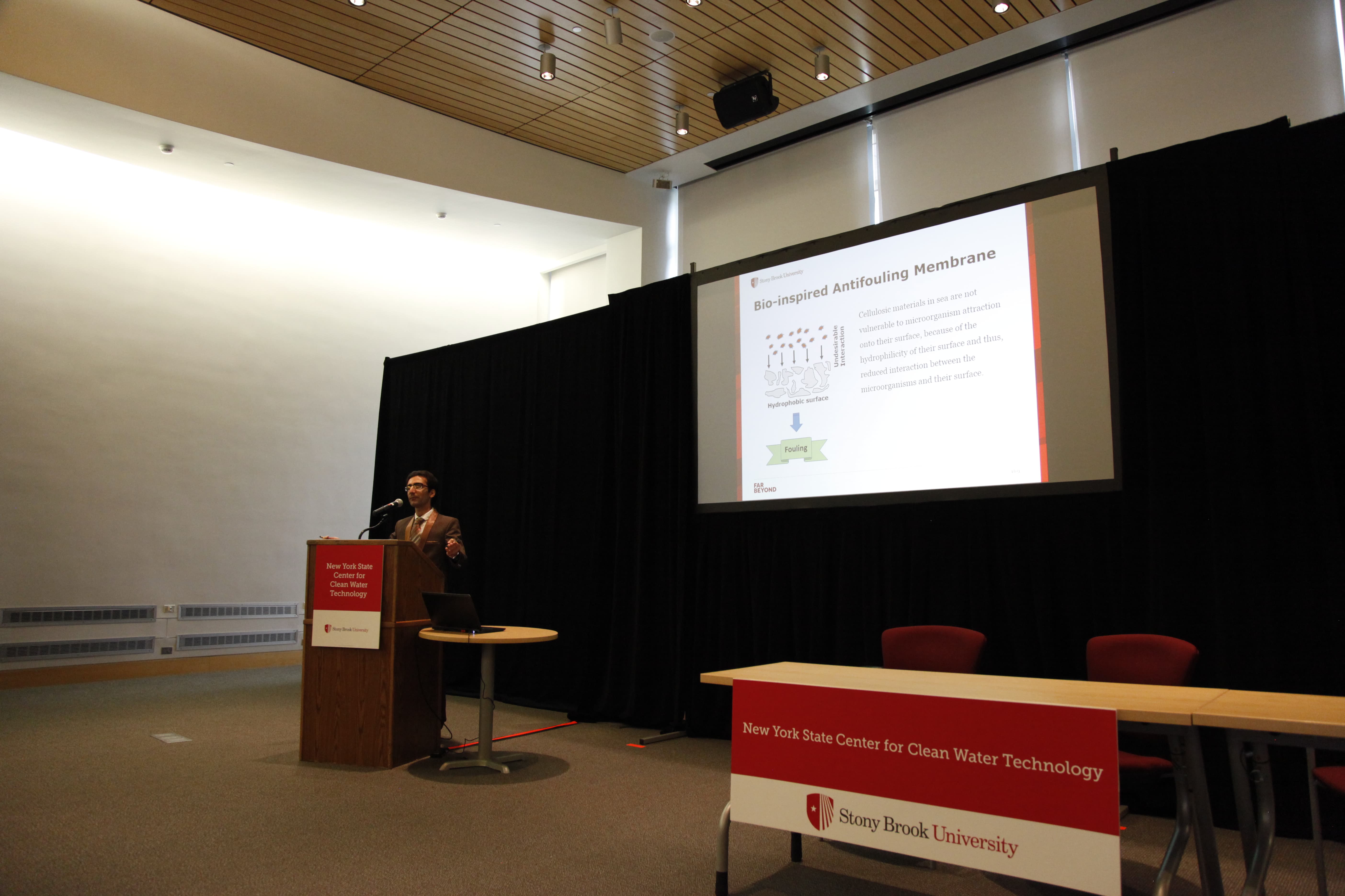 Thursday, June 23rd, Stony Brook, N.Y. – The New York State Center for Clean Water Technology today hosted its first symposium, an event designed to present an overview of the Center’s strategic vision and to showcase the promise of its research investments as it works to develop more cost-effective water quality protection and restoration technologies, focusing first on solutions that remove nitrogen and other contaminants from individual onsite wastewater. The event was attended by more than 100 people representing a wide-range of stakeholders from industry to academia and environmental advocacy, as well as regulators and policy makers from every level of government.