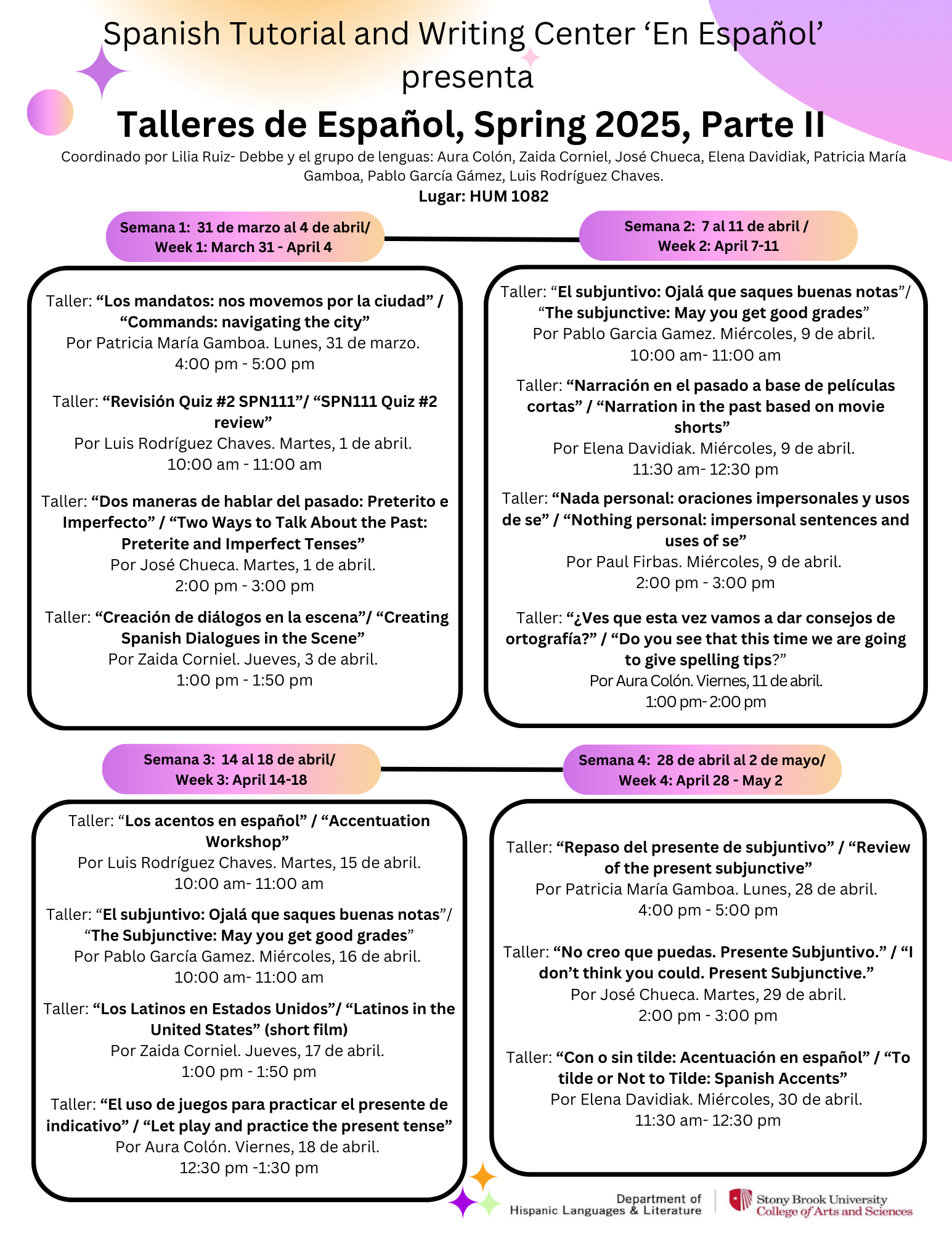 Workshop Talleres for Fall 25 (PDF Doc)