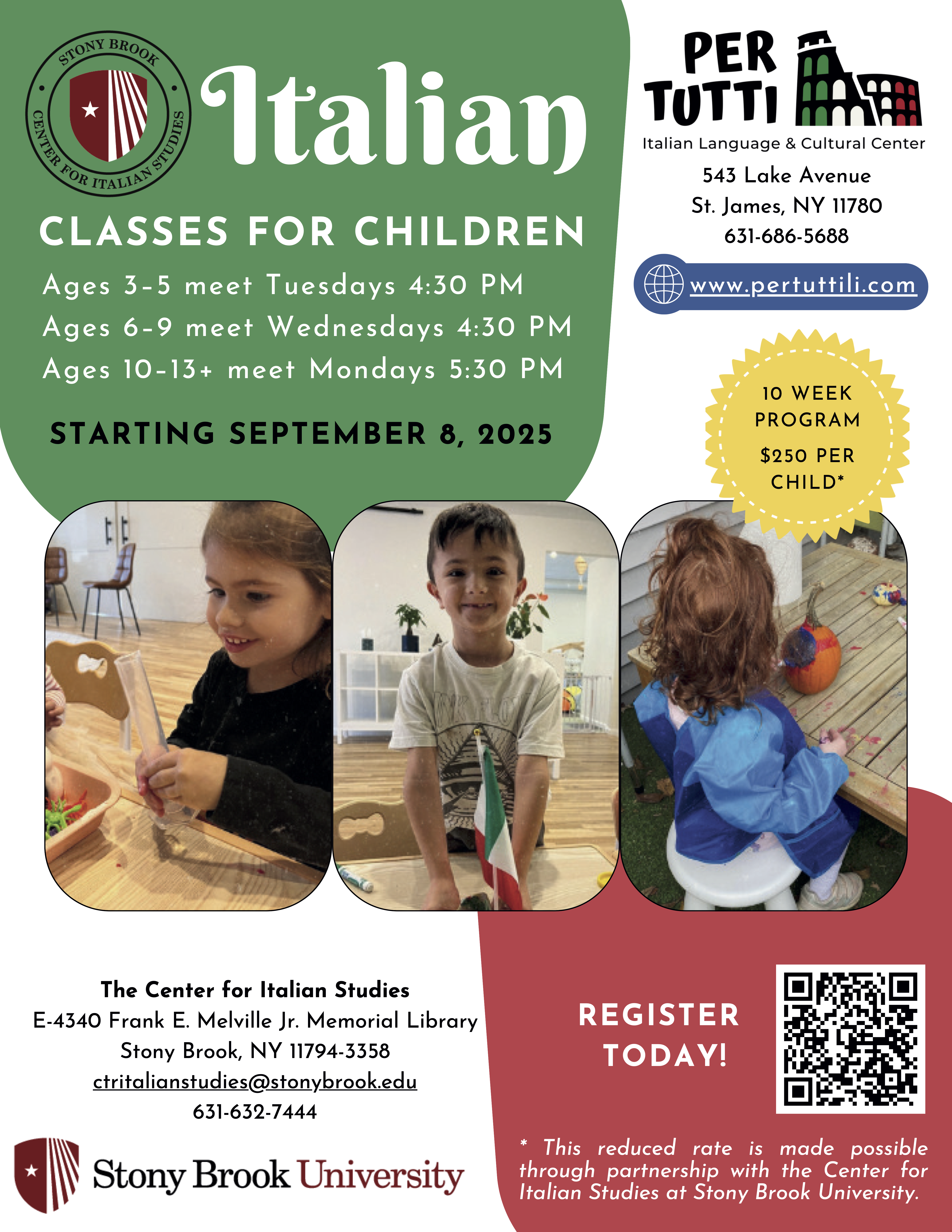 For additional information, please call us at (631) 632-7444 or email ctritalianstudies@stonybrook.edu.