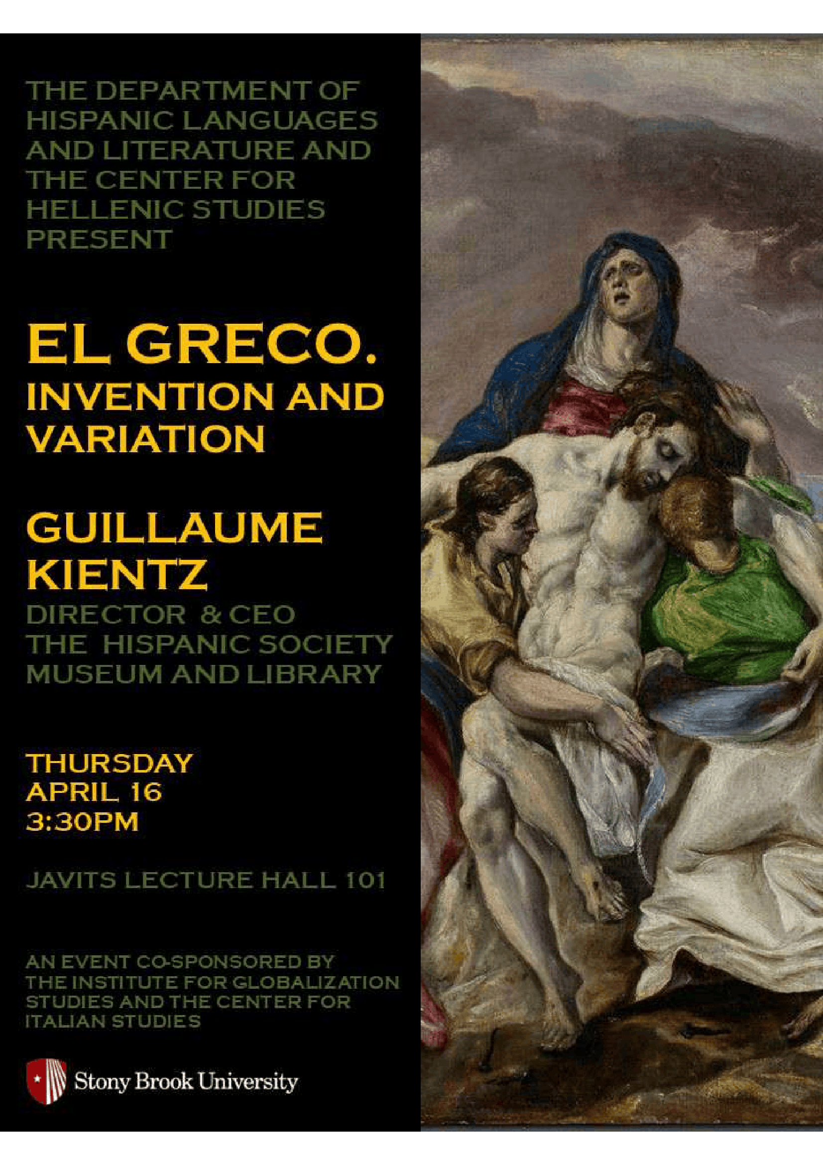 El Greco, Invention and Variation Javits Lecture Hall, Room 101, Stony Brook University. Open to all. |
