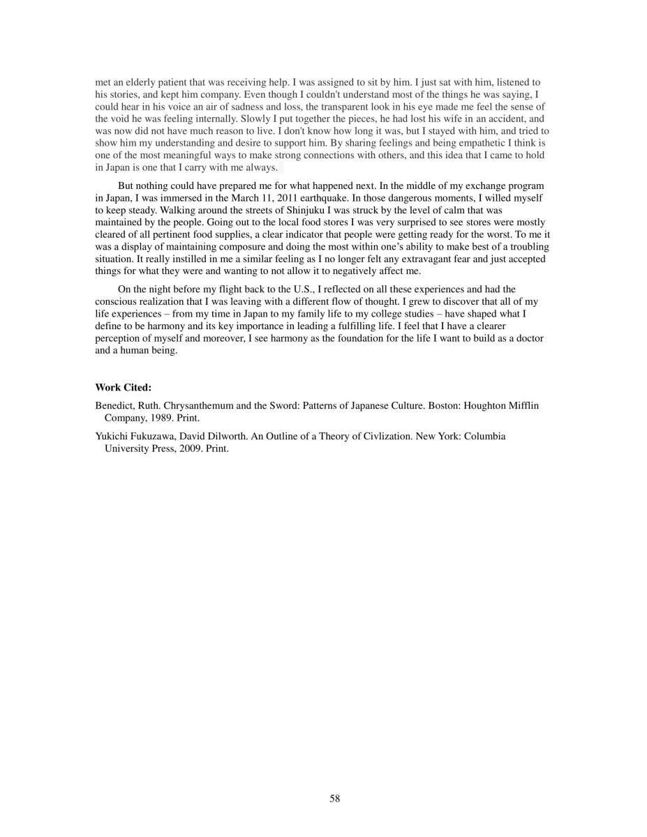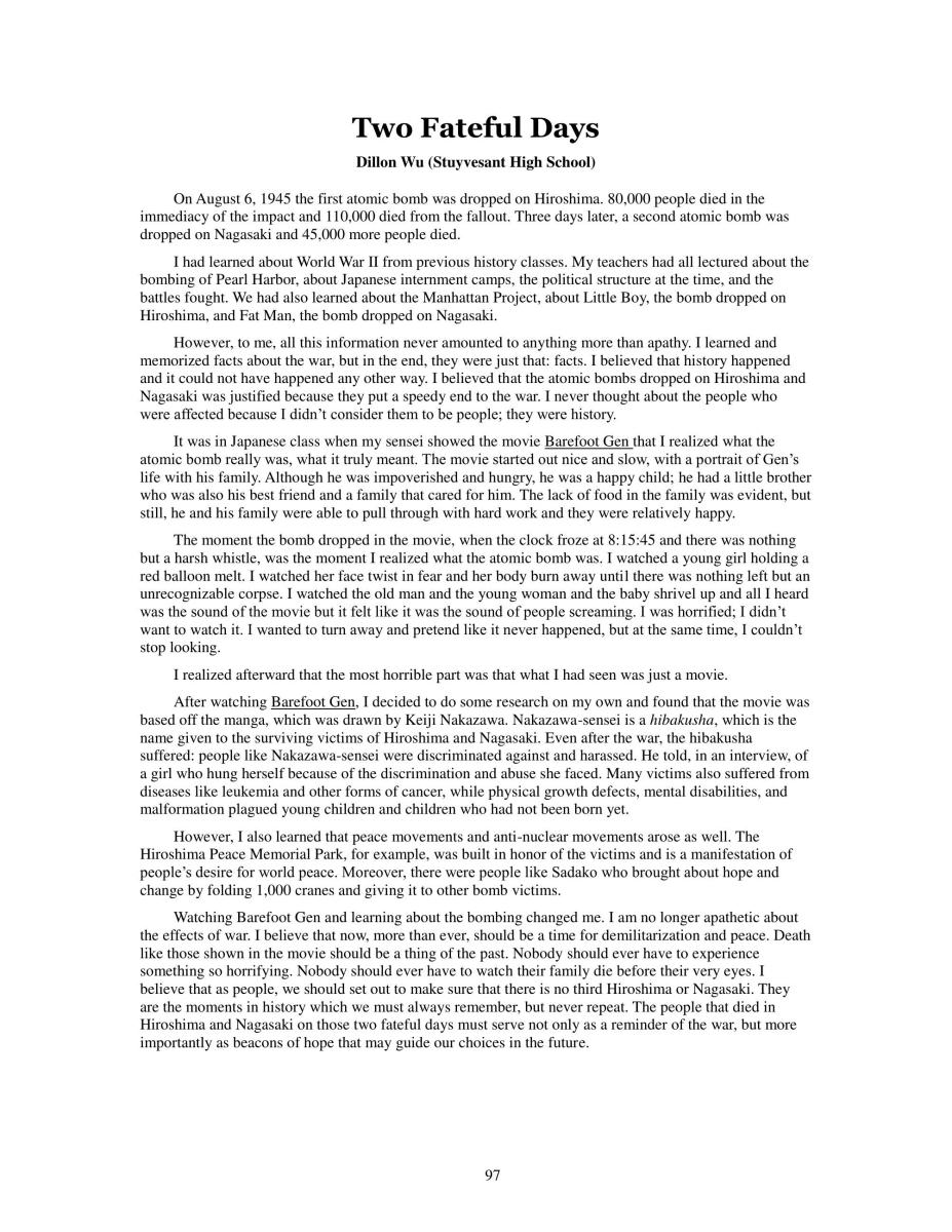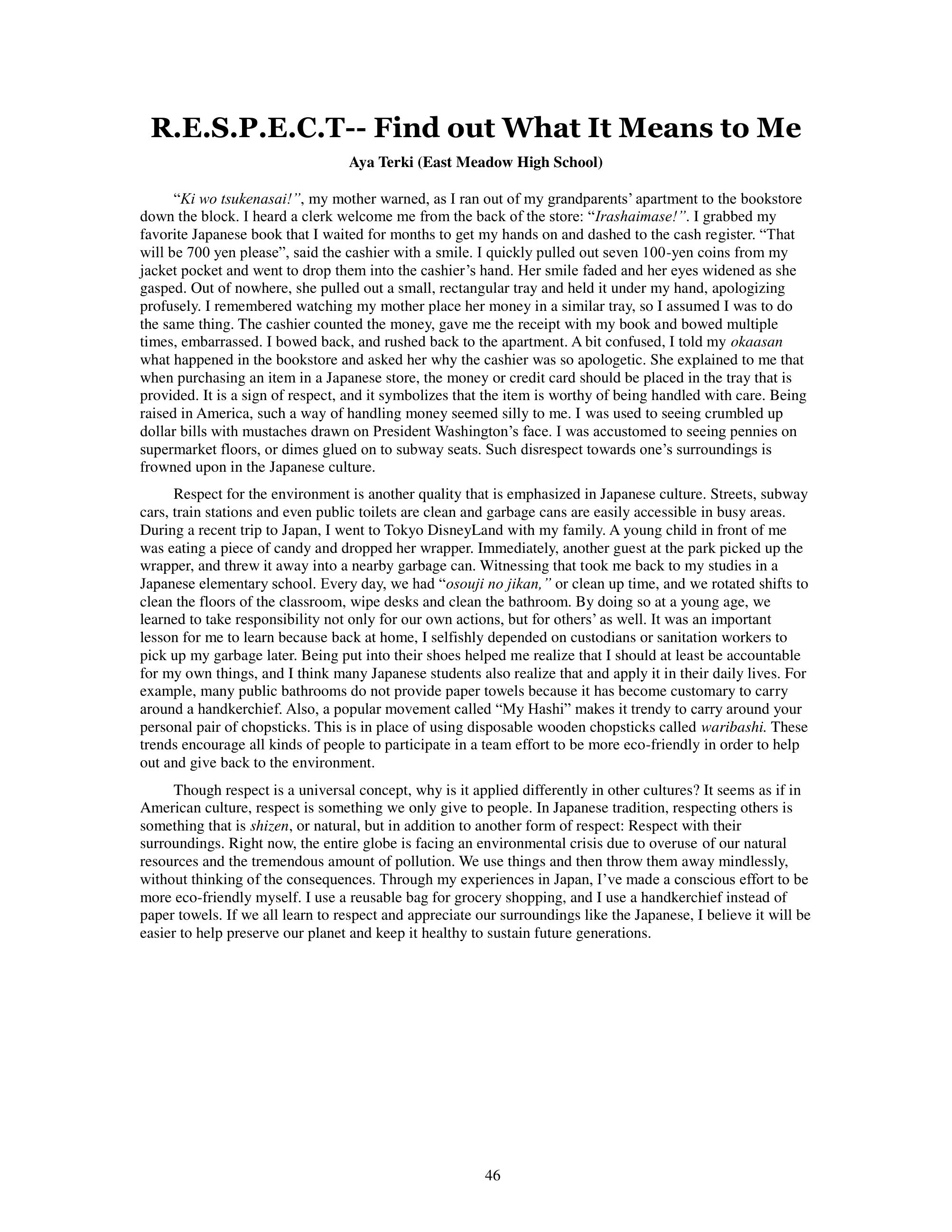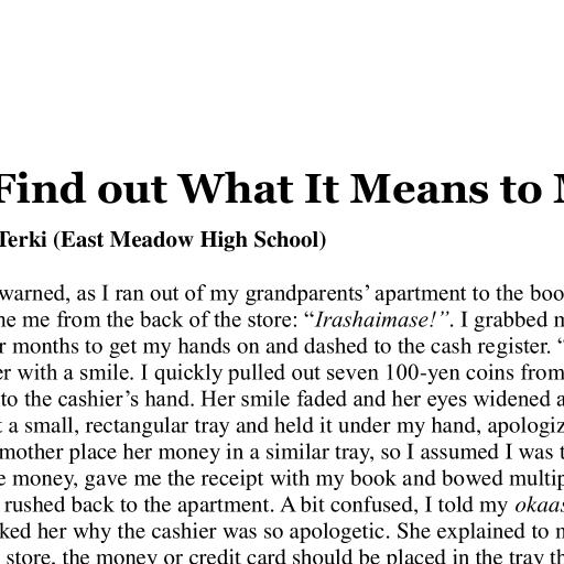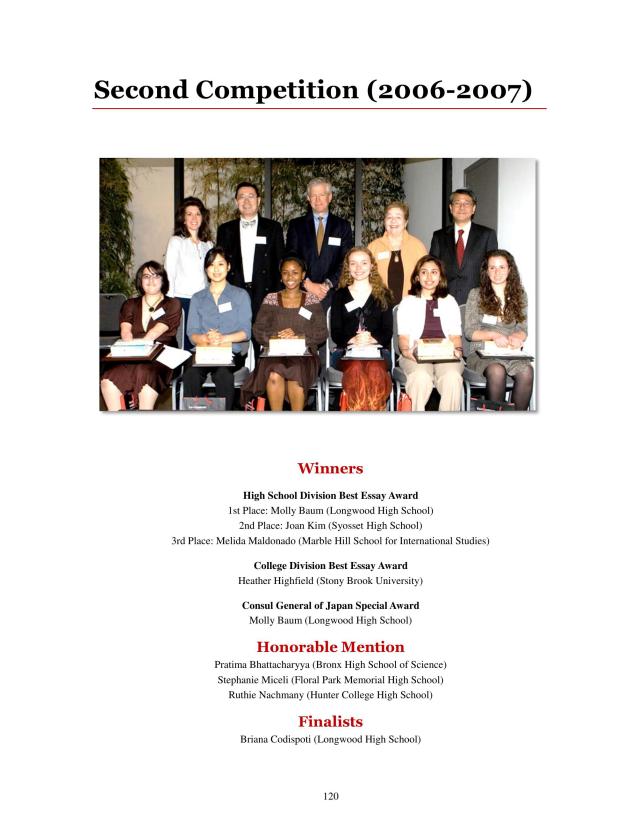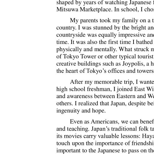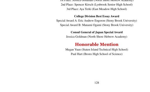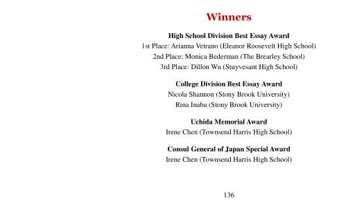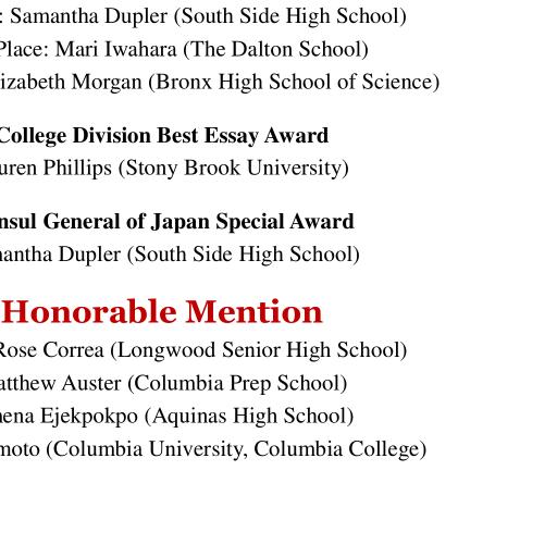 High School Division 1st Place Best Essay Award & Consul General of Japan Special Award