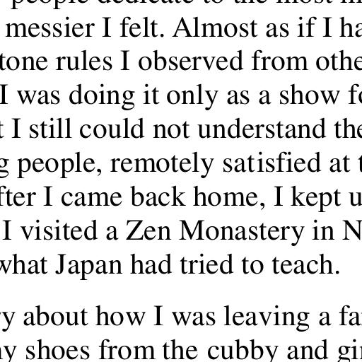 My life in the temple started on the next day. My parents encouraged that I train for discipline at temple for seven days with the monk and his wife. During my training, I would adopt a new Buddhist culture but I was not enthusiastic. Despite receiving the opportunity to learn about temple life, at the time, I only lamented being unable to meet my friends in Tokyo. However, my exposure to temple life changed my perspective on Japanese culture as a whole and would affect my life in Japan.