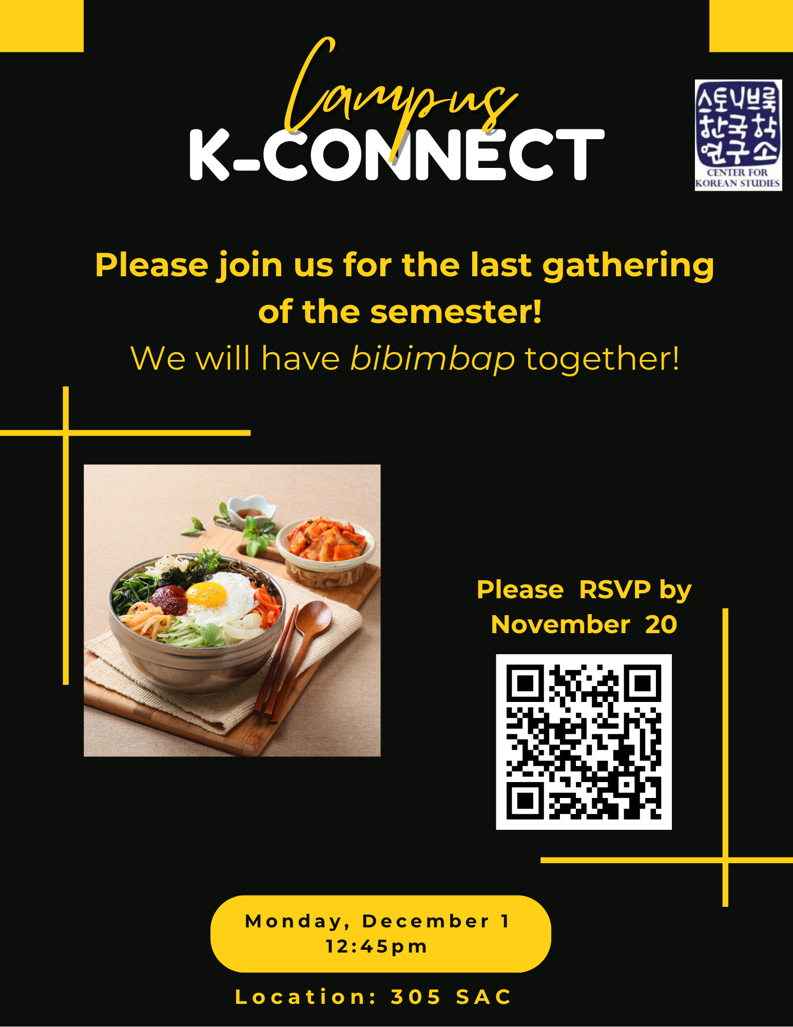 - Oct. 15 @ 5:30PM: Korean Studies Social Cafe  HUM 1008