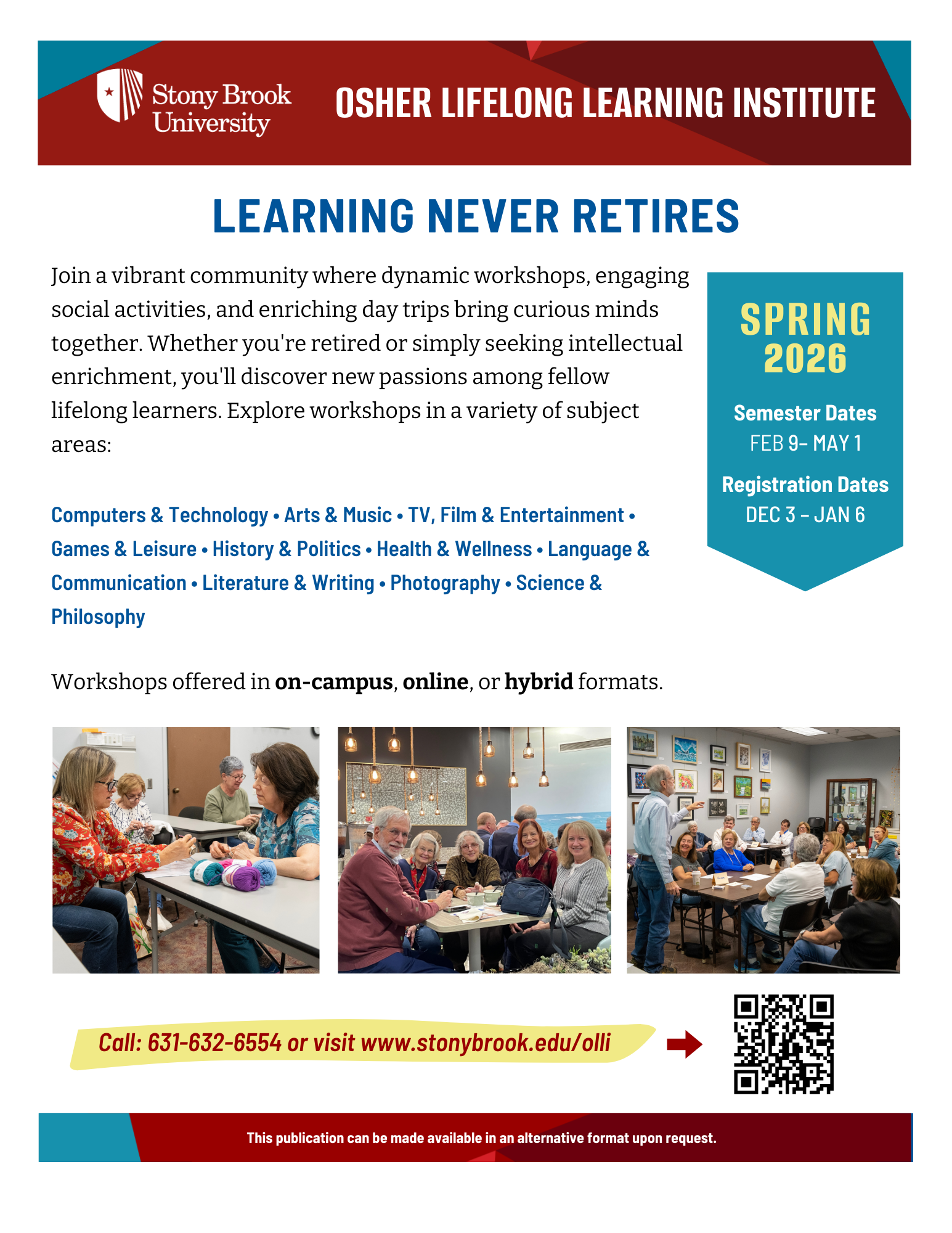 OLLI membership gives you access to such a wide variety of workshops, lectures, trips