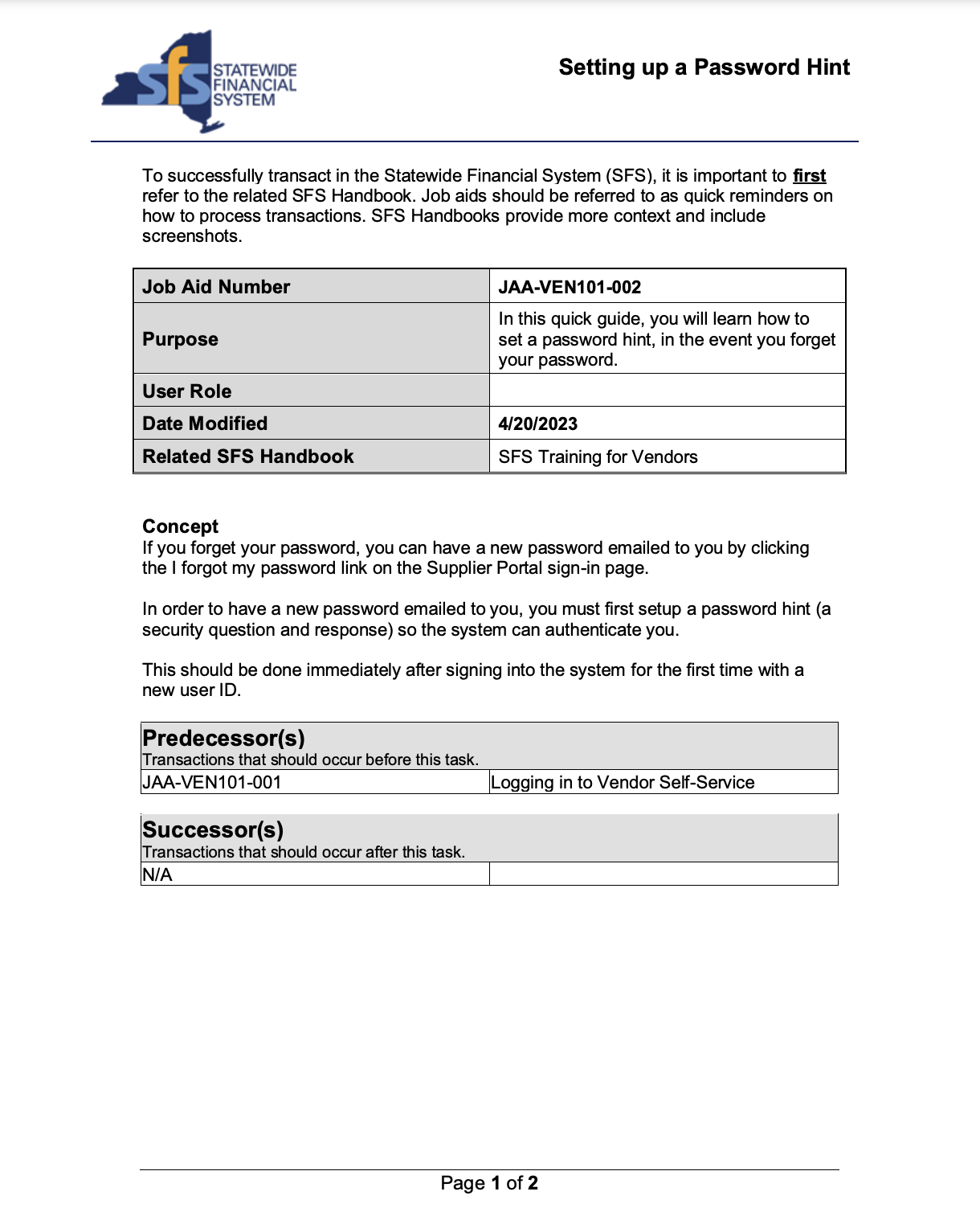 All companies and organizations doing business with New York State (NYS) must be registered in the NYS vendor file. They must also maintain and add new information to their vendor record by accessing their record using the NYS Vendor Portal link below. Also provided below are instructions to aid in completing each noted process. Only a supplier contact currently listed in the NYS vendor file can update your company's or organization’s vendor record. If you have any questions or need assistance, please call the State's Help Desk at 855-233-8363 or email helpdesk@sfs.ny.gov. Please note that Stony Brook University cannot change your vendor record information on your behalf.